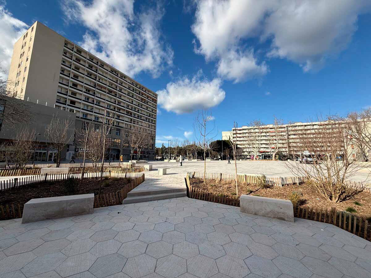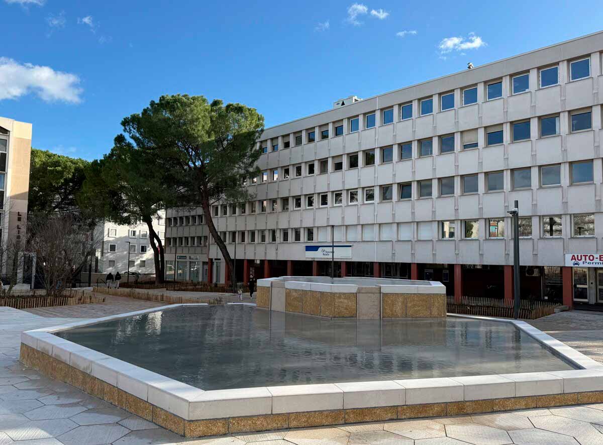 À Aix-en-Provence, la place Romée-de-Villeneuve a réalisé sa mue. Inaugurée le 7 février, elle a rouvert au public après une phase de tests techniques, concernant notamment la fontaine.