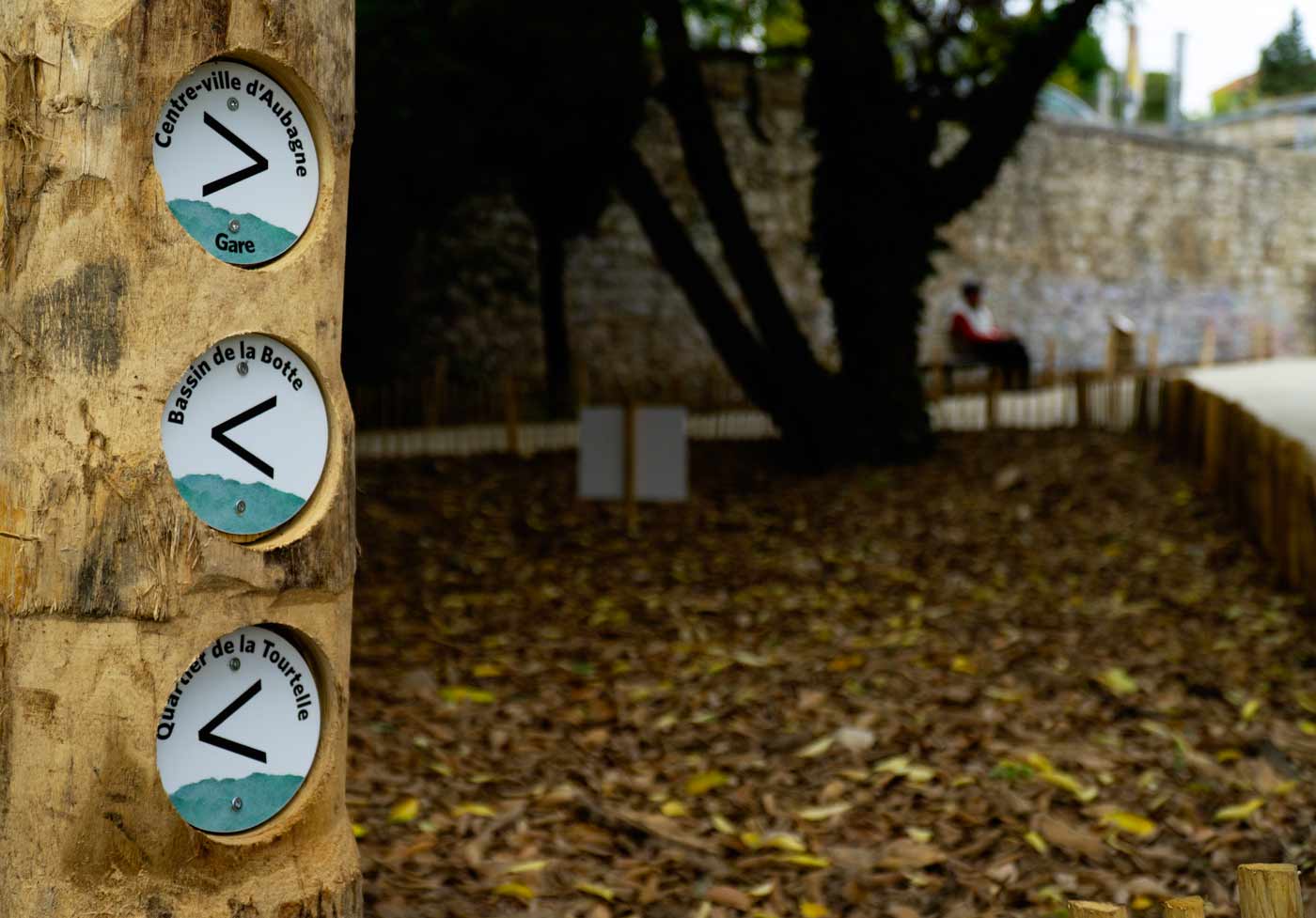 Le parc s’étend sur près de 9 000 m², dont plus de 8 000 m² végétalisés et 5 000 m² désimperméabilisés. Il offre des chemins partagés piétons-vélos, trois passerelles, une plateforme handi-pêche, des pontons d’observation et un belvédère sur la rivière. Des panneaux pédagogiques et des fresques en céramique réalisées avec des artistes aubagnais invitent à découvrir la biodiversité locale. Le bassin de la Botte, réaménagé en espaces de repos, de nature et de rencontre, favorise le lien entre habitants et milieu naturel.