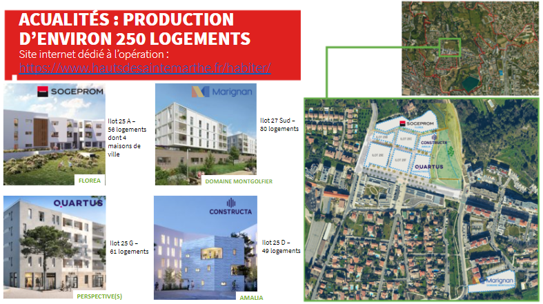 - Fin d’année 2019, 1500 logements nouveaux ont été délivrés (dont 1200 sur le cœur de quartier Mirabilis) et 315 étaient déjà réalisés le long de l’avenue du Merlan