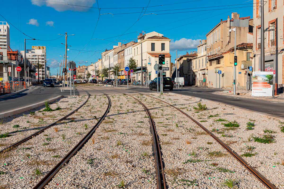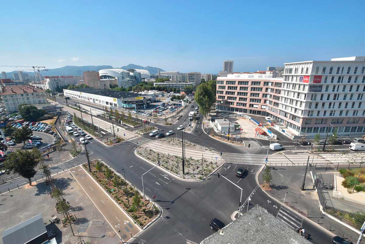 Cet ambitieux projet n’est pas qu’un simple prolongement de ligne : c’est une transformation majeure et en profondeur de la ville, le tramway ayant servi de levier de renouvellement urbain. Le chantier, mené par des centaines de personnes, a permis, entre autres, de reconfigurer en intégralité la place Castellane, qui est devenue un carrefour apaisé, au croisement des lignes de tramway, de métro et de bus. Une véritable prouesse technique car l’aménagement a été réalisé dans un environnement urbain très contraint, avec le maintien de la circulation, du passage des lignes à haut niveau de service (B1 et 19) et du métro. Sans oublier la livraison du parking relais (P+R) de 600 places à l’été 2025 à Dromel, qui est devenu un véritable hub de la mobilité du sud de Marseille, avec en plus un centre de maintenance pour les nouvelles rames et un pôle d’échanges requalifié.