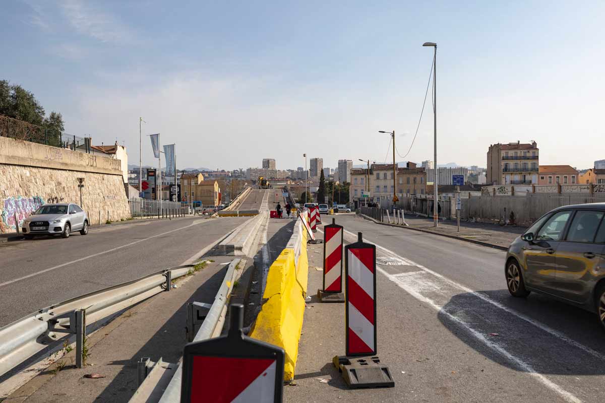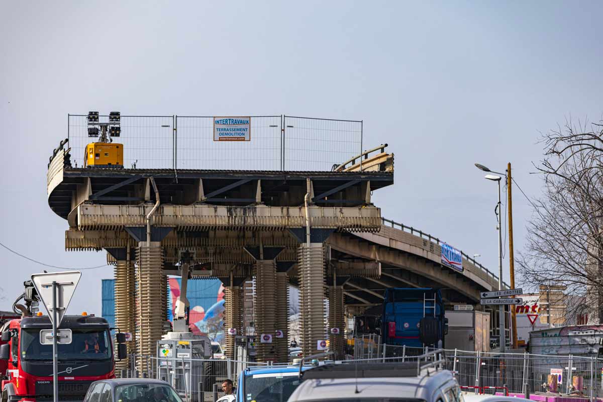 Vieux de près de 50 ans, cet autopont, voit défiler, pendant les pics de circulation, près de 3 000 véhicules par heure. Dans le cadre de l’opération de rénovation portée par Euromed 2, cette passerelle va être démolie et les voiries réaménagées.