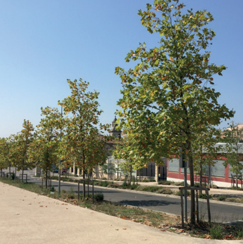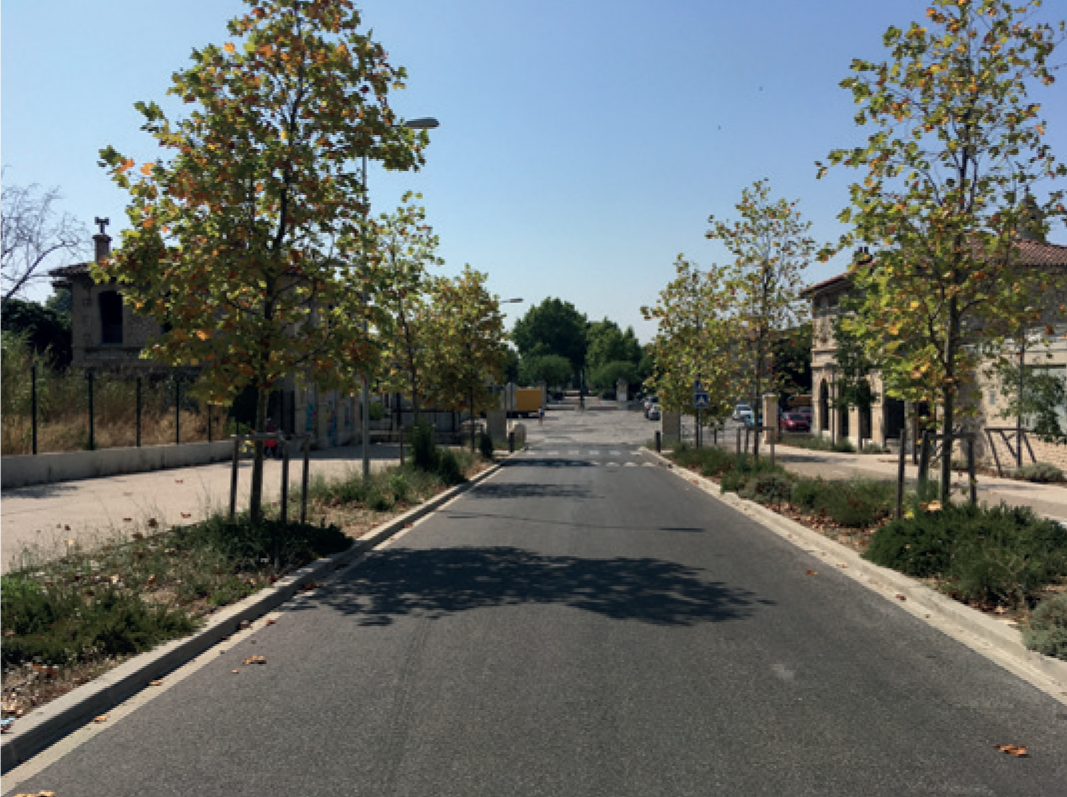 Ces espaces ont été traités de manière qualitative avec une volonté de végétalisation et d’intégration d’espaces dédiés aux mobilités douces (pistes cyclables et larges trottoirs).